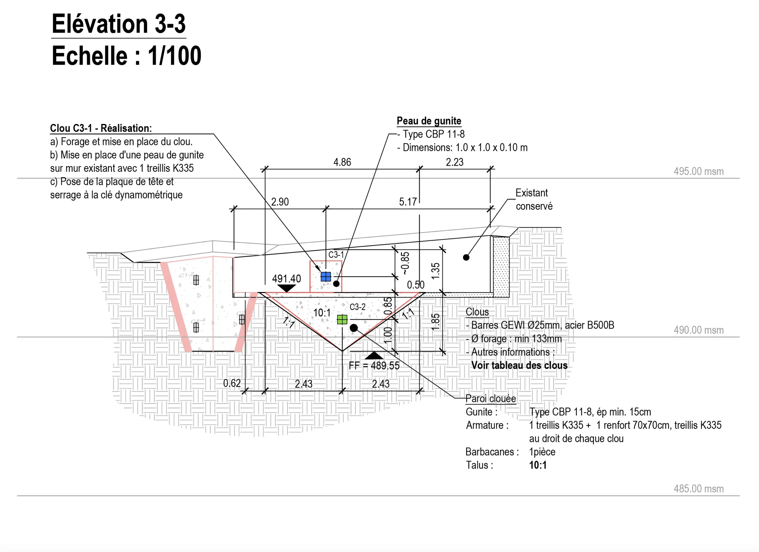 Prestations d’ingénieur-civil spécialisé en travaux spéciaux et terrassements. Étude, dimensionnement et contrôle d’exécution de pieux, ancrages, blindages de fouilles, amélioration de sol, dispositifs d’épuisement ou d’infiltration des eaux, géostructures énergétiques (géothermie), murs de soutènement, tranchées couvertes, ouvrages souterrains, etc. - Géostructures existantes